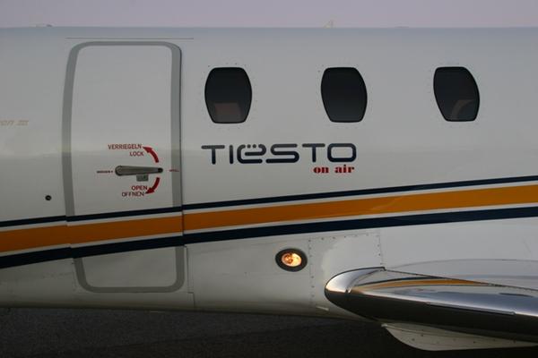 Entweder wirklich sein eigener Privatjet oder einfach ein Aufkleber,der vor dem Flub an die Maschine geheftet wurde...