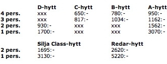 Preise sind pro Person und in Kronen. Rechne durch 10 und addiere 10%, dann müsste es ungefähr hinkommen. Ich war dieses Mal in B ohne Fenster, habe also ca. 80 Euro bezahlt.