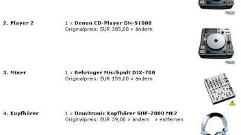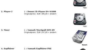 Kopfhörer: NUMARK PHX PRO ca. 60 €Damit wärst Du bei ca. 1360 €. Ist zwar etwas mehr, aber damit hast Du mit unter das beste Preis-/Leistungsverhältnis.