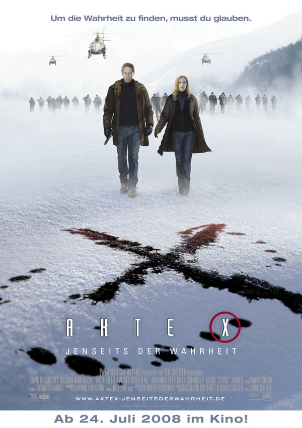 Endlich können wir euch dank 20th Century Fox das deutsche Poster zu AKTE X - Jenseits der Wahrheit präsentieren auf dem die Zeichen im Schnee nichts gutes verheißen.