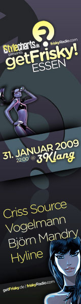 Jetzt ist es soweit: Am 31. Januar 2009 kann man den friskyVibe im Essener 3Klang endlich hautnah erleben, wenn neben den [COLOR="DarkGreen"]friskyDJs Ingo Vogelmann und Hyline[/COLOR], [COLOR="Yellow"]Björn Mandry und der Global Player Criss Source[/COLOR] seine persönliche Definition von internationalem Sound zum Besten gibt. In Kooperation mit dem Online-Magazin stylecharts.de, das für seine exzessiven und energiegeladenen Partys bekannt ist, nimmt getFrisky! alle auf eine Reise einmal rund um den Erdball mit. Von Progressive bis Techhouse sind alle Spielarten vertreten, denn: Rocken zählt!