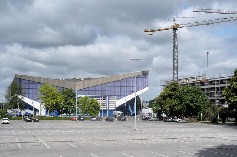 ZitatErbaut wurde die Grugahalle durch eine Architektengemeinschaft des Hannoveraners Ernst Friedrich Brockmann mit dem Essener Gerd Lichtenhahn aus Beton. Die stählerne Dachkonstruktion überspannt eine freie Fläche von 80 mal 80 Metern. Darunter verfügt die Halle bestuhlt über etwa 7.700 Plätze, unbestuhlt über rund 10.000 Plätze. Die eigentliche Halle ist mit Zuschauerraum und Bühne rund 2.800 m² groß und befindet sich baulich direkt über dem etwa 2.600 m² großen Foyer. Der umbaute Raum des gesamten Gebäudes umfasst 165.000 m³.