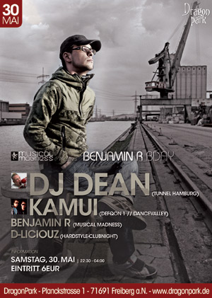 Lineup: DJ Dean & KAMUI (Defqon1/Dance Valley) & Benjamin R. (Musical Madnass) & D-Liciouz (Hardstyle-Clubnight).