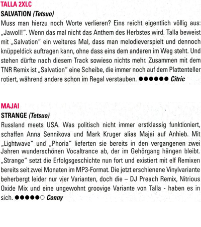 Die neue Talla-Scheibe. Wird nächste Woche released auf Tetsuo. Ich finde alle Mixe sind solide, aber nichts besonderes. Von Talla kommt sowieso nichts wirklich überzeugendes mehr. "Carry me" und "No in between" waren die letzten beiden Scheiben, die mich voll und ganz überzeugt haben. Schlecht ist es nun nicht, aber eher Einheitsmittelmaß