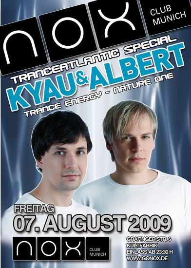 KYAU & ALBERT sind exklusiv zu Besuch im NOX und werden die Trancefans mit einem 3 Stunden Set beglücken.