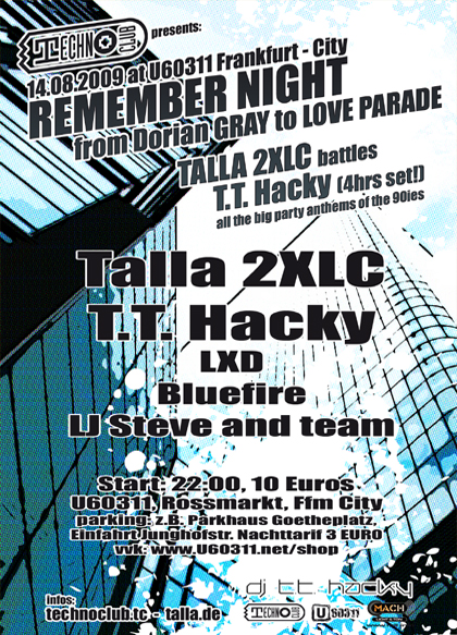 ZitatAlles anzeigen14.08.2009 TECHNOCLUB presents: Remember Night @ U60311, Frankfurt am Main