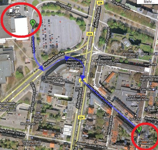 Öööhm ........ okay, ich geb zu: ich gehöre zu der vorletzt-genannten Gruppe! Deswegen hab ich aber noch lange keine 3 Rolls-Royce mit Chauffeur in der Garage stehen! Aber ich weiß trotzdem ungefähr, was Du meinst. Daher den Tip, Essen über Google mal nicht nach Hotels, sondern nach "Pensionen" zu durchforsten. Die kleine Pension, die wir gebucht haben, und in Laufnähe zur Grugahalle liegt, kostet 39 Euro. Es gibt also schon noch die erschwinglichen Sachen. Essen ist ja schließlich nicht LondonViel Spass beim Googeln!