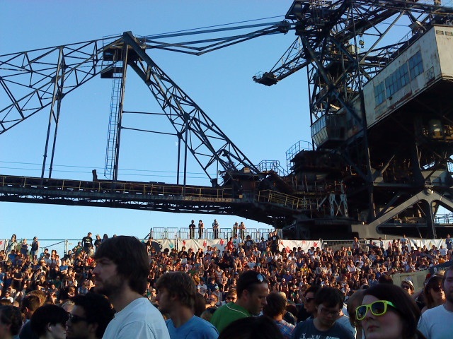 Soeben ist mir per Newsletter die Bestätigung der ersten Namen für das diesjährige Melt! Festival hereingeflattert, welchem der Andru und meine Wenigkeit in den letzten beiden Jahren jeweils einen unvergesslichen dreitägigen Besuch abgestattet haben. Auch in diesem Jahr werden sich Schaufelradbagger und Co. auf der Ferropolis-Halbinsel im Gremminer See a.k.a. vollgelaufener ehemaliger Braunkohletagebau im Herzen von Sachsen-Anhalt wieder in eine in der europäischen Festivallandschaft einzigartige Kulisse verwandeln, welche mittlerweile auch viele Musikfreunde aus dem Ausland anzieht und nicht nur dadurch im letzten Jahr mit etwa 20.000 Besuchern zum ersten Mal vorzeitig komplett ausverkauft war. Die Zeichen stehen sicherlich auch in diesem Jahr nicht schlecht dafür, feiert das Melt! doch stets ein ausgelassen friedliches Beisammensein von elektronischer Musik jeglicher Couleur sowie hochwertiger Indiegitarren-Mucke, welches in diesem Jahr von den hochkarätig einzuschätzenden Jungs von Massive Attack angeführt wird. Zudem sorgen Joris Voorn, Oliver Koletzki, Pantha Du Prince und Four Tet für Zungenschnalzen im elektronischen Bereich, während die Indie-Fahne von solch großartigen Bands wie Tocotronic, Die Sterne, Get Well Soon und Ja!Panik (im nationalen Sinn) sowie den Foals (Entschädigungsgig nach der letztjährigen Absage), WhoMadeWho, Blood Red Shoes und dem Two Door Cinema Club (im internationalen Sinn) hochgehalten wird. Am meisten angetan bin ich jedoch von der Zusage von The xx, welche mit ihrem minimalistischen Popentwurf für meinen Geschmack aus dem Stand das beste Album des 2009er-Jahrgangs abgeliefert haben! Schaun mer mal, wer sich im Laufe der nächsten Wochen noch alles dazugesellen wird - das Triple rückt auf jeden Fall immer mehr in greifbare Nähe... ![]()