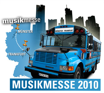 Wir machen den Traum wahr und fahren euch am Samstag, den 27.03.2010, zur Musikmesse nach Frankfurt am Main. Hier geht es direkt zur Anmeldung.Auch in diesem Jahr bieten wir euch wieder eine stressfreie Fahrt zur europaweit größten Musikmesse an. Auf der internationalen Musikmesse erfahrt ihr alles über die wichtigsten Neuerungen in Sachen Musikinstrumente, Studio-, Beschallungs- und Lichttechnik, Musiksoftware und vieles mehr. Besucht Workshops, Vorführungen, Konzerte oder Fachdiskussionen. Alles was ihr zum Musikmachen braucht, findet ihr garantiert dort!