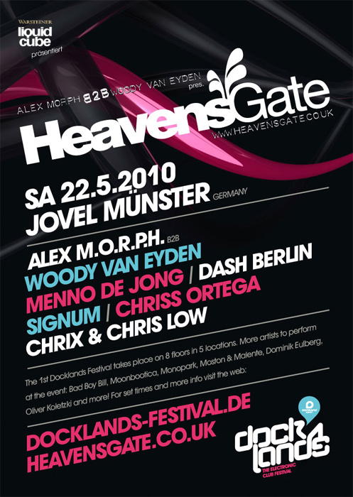 • Das Docklands Festival steht am 22. Mai auf dem Plan! Für die Trancefreaks werden wir einen HeavensGate Floor @ Jovel hosten, mit folgendem Lineup: