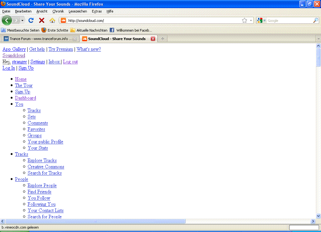 Seit heute wird Soundcloud bei mir mit Firefox nicht mehr richtig angezeigt. Ich weiß gar nicht, wie ich das beschreiben soll. Auf weißem Untergrund steht all das, was normalerweise auf der Soundcloudseite steht, untereinander. Grafiken und der Player werden gar nicht mehr angezeigt. Es sieht so aus, als wenn nur der "Rohbau" der Seite geladen wurde. Im Internet Explorer funktioniert aber alles einwandfrei. Weiß jemand, was der Grund dafür sein könnte? :gruebel: