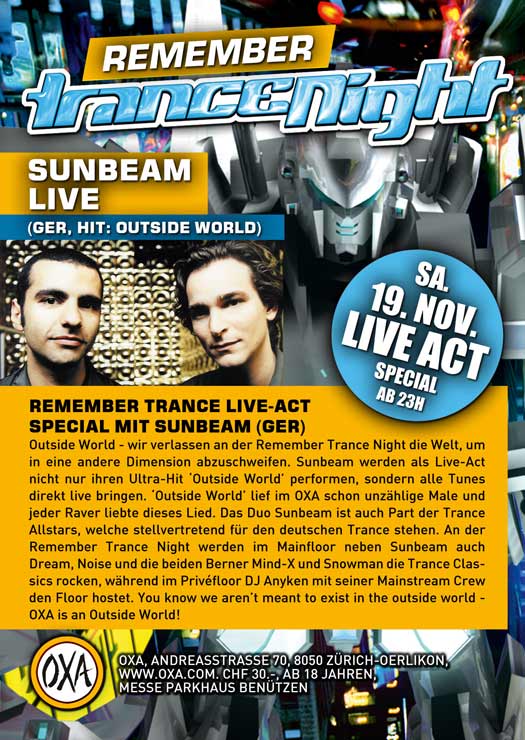 • Schön, wieder ein Top-Trance-Event der Spitzenklasse in der Nähe zu haben. Insbesondere, nachdem sich die Energy nicht mehr als interessante Veranstaltung für meinen Geschmack darstellt.