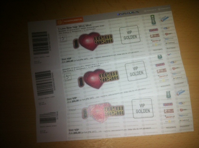 ist wohl was wahr an "alle guten dinge sind 3""We've just received money for your tickets (3 pcs.) to I Love New Year 2011/2012 - order no. 200/14310.