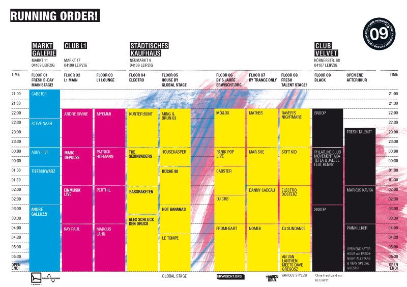 Musikalisch dürfte da für jeden was dabei sein. Im City Club soll es auch nen Black Floor geben. Ich bin gespannt =)
