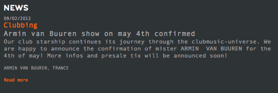 bin zwar schon lange kein armin fanboy mehr, aber ist doch super, wenn man auch mal die big names in deutschland hat! wenn der prais so fair sein sollte wie bei above & beyond im märz, werd ich auch dort hingehen.