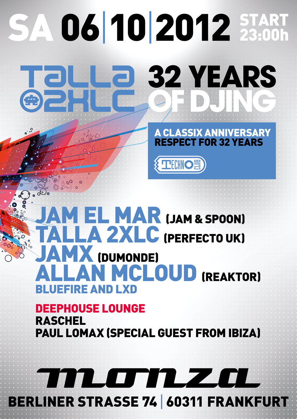 TECHNOCLUB PRES.: TALLA 2XLC – 32 YEARS OF DJING – A CLASSIX ANNIVERSARY