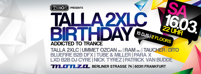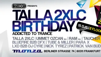 TALLA 2XLC BIRTHDAY – “ADDICTED TO TRANCE” – 15 DJS ON 2 FLOORS!!