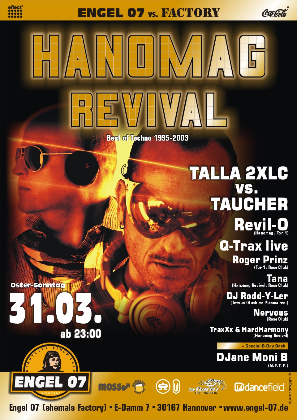 Event: Hanomag Revival feat. Talla 2XLC vs. Taucher (Motto "Best of Techno 1995-2003")