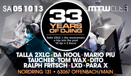 [2013-10-05] Technoclub 33 Years of DJing Talla 2XLC @ MTW, Offenbach