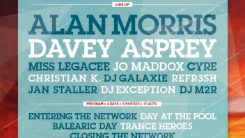 Folgende Events werden im Laufe der TRANCE.MISSION - THE IBIZA NETWORK stattfinden: Entering The Network (Openingparty), A Day At The Pool, IbizaTranceFamily vs. Trance.Mission At Tropi Trance Bar In San Antonio, A Balearic & Deephouse Day, Trance Heroes At The Pool und Closing The Network (Closingday). Jeden Tag also ein "Event im Event" - mal tagsüber am Pool oder aber nachts in der clubeigenen Disco / Lounge bzw. in der Tropi Bar in San Antonio. Folgende angesagte TopActs aus dem internationalen Trancebusiness sind mit am Start: Alan Morris (Transistic - Ruhr Area), Miss LegaCee (Sense for Trance - Utrecht NL), Davey Asprey (Monster Tunes - Birmingham UK), Jo Maddox (High Contrast - Karlsruhe), Cyre (Black Hole - Stuttgart), Christian K. (Trance.Mission - Stuttgart), DJ Galaxie (Ravensburg), Refr3sh (Lübeck), Jan Staller (Tuttlingen), DJ Exception (Hamburg) und DJ M2R (Lohr am Main). Mehr Infos zur Location gibt's übrigens auf http://www.clubpuntaarabi.com - und das zugehörige Facebookevent gibt's auf http://www.facebook.com/events/255121737995507