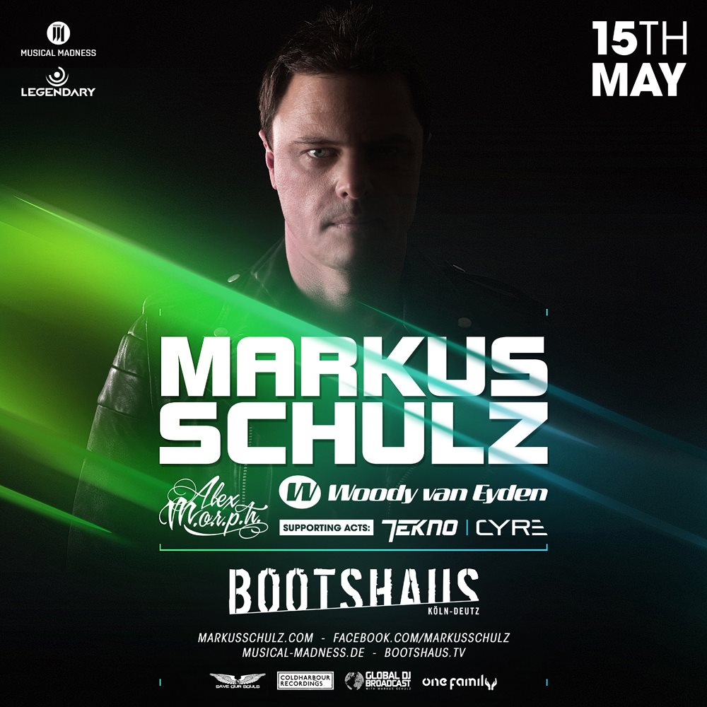 "Coldharbour Recordings Gründer Markus Schulz kommt nach knapp 3 Jahren wieder für einen Clubgig nach Deutschland! Der gebürtige Deutsche lebt seit vielen Jahren in den USA und tourt non-stop rund um den Globus. Aktuell sorgt er auch zusammen mit Ferry Corsten unter dem Alias “New World Punx” für Aufsehen. Als weiteres Highlight konnten wir zudem Alex M.O.R.P.H. und Woody Van Eyden verpflichten. Abgerundet wird das Line Up von den Support Acts Tekno und Cyre. Wir freuen uns darauf America’s Best DJ 2014 erstmalig in die Domstadt zu bringen!