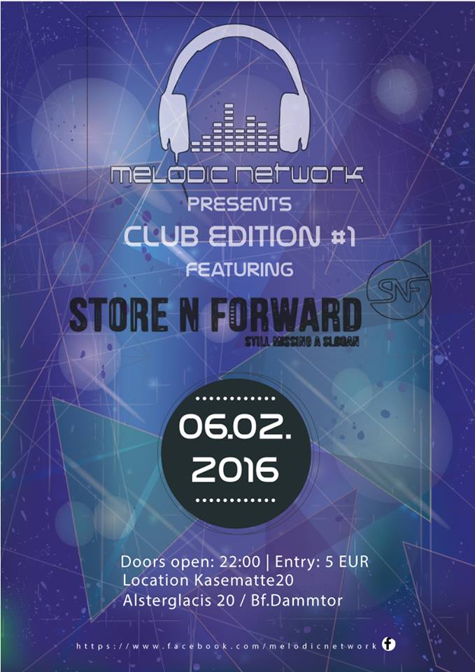 Als hochkarätigen ersten Headliner der Club Edition konnten wir das Duo Store N Forward gewinnen! Die beiden haben schon Remixe für unter anderem Above&Beyond produziert und hatten mit "Bananas" schon einmal den "Tune of the Week" bei Armin van Buurens Radioshow "A State of Trance"! Die beiden passen mit ihrem techigen Sound genau zu Melodic Network und werden für ordentlich Stimmung sorgen!