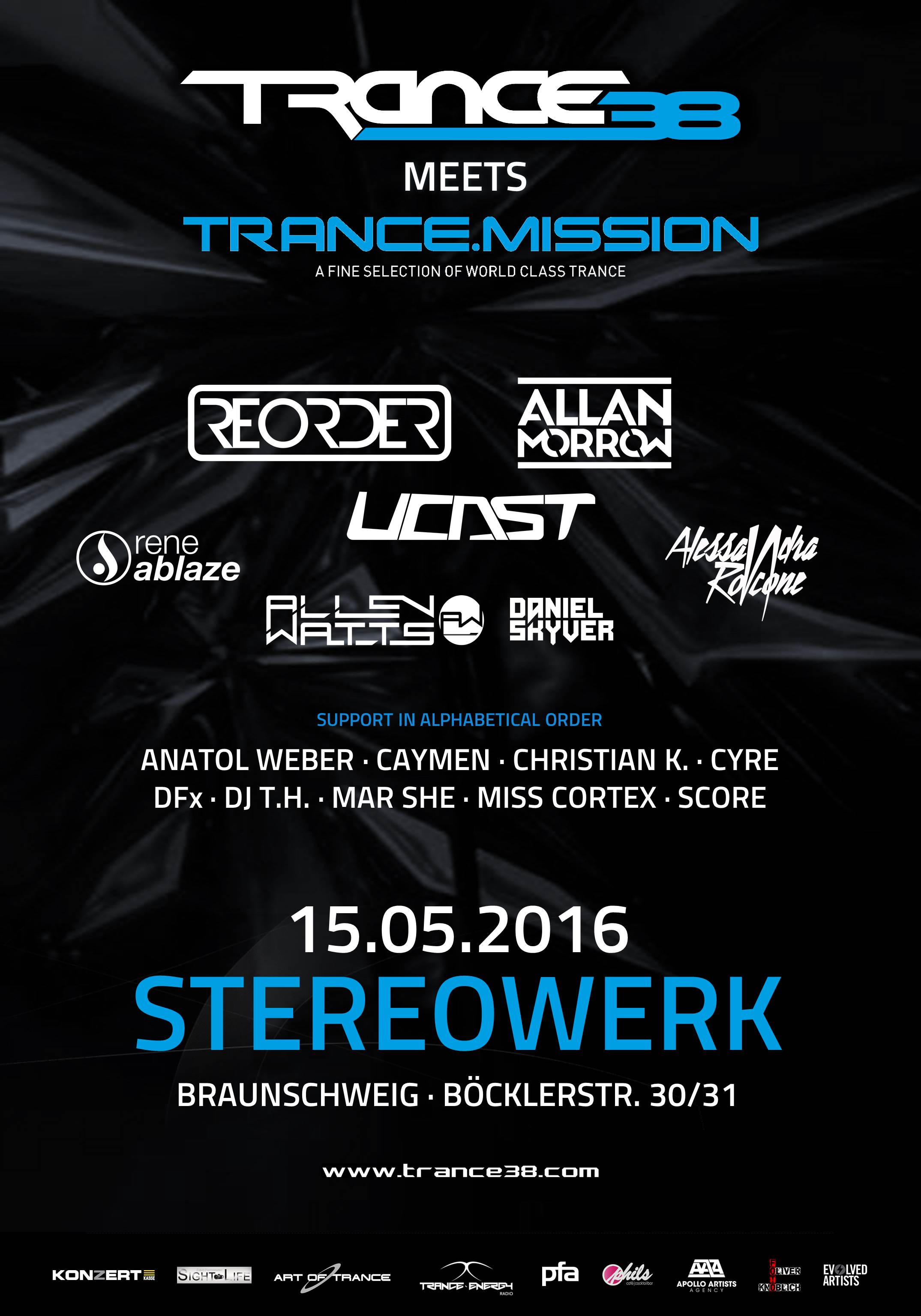 Sonntag, 15.05.2016 Trance38 meets Trance.Mission @ Stereowerk in Braunschweig