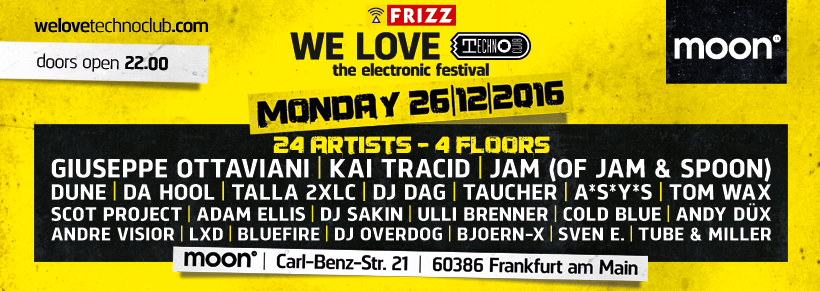 Montag, 26.12.2016 We Love Technoclub @ moon13, Carl-Benz-Straße 21, 60386 Frankfurt am Main