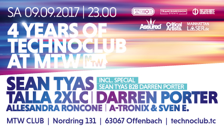 Samstag, 09.09.2017 – 4 Jahre Technoclub @ MTW – Nordring 131, 60367 Offenbach am Main