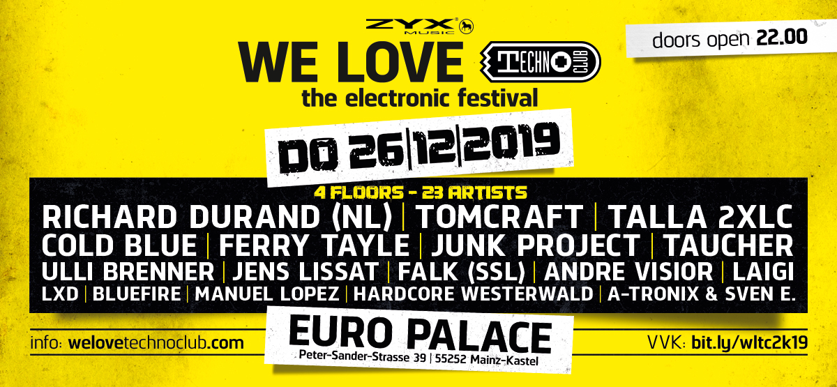 26.12.2019 We Love Technoclub @ Euro Palace, Peter Sanderstrasse 39, Wiesbaden (Mainz Kastel)