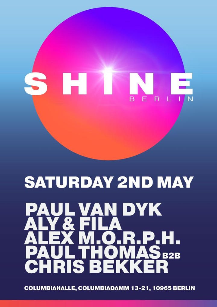 Located close to the Tempelhof Airport area, come May 2nd Columbiahalle will host a DJ line-up that’s the beating heart epitome of SHINE’s musical frequency. In addition to seeing trance’s foremost founding father in his native environment, SHINE will welcome their other DJ mainstays Aly & Fila to the German capital. Paul’s fellow countryman Alex M.O.R.P.H. will also be deck-side, once again elevating melodic trance to an art form. Opening SHINE Berlin meanwhile will be a B2B-first, with the UK’s Paul Thomas and Berlin’s own Chris Bekker, applying some progressively themed therapy to the event.