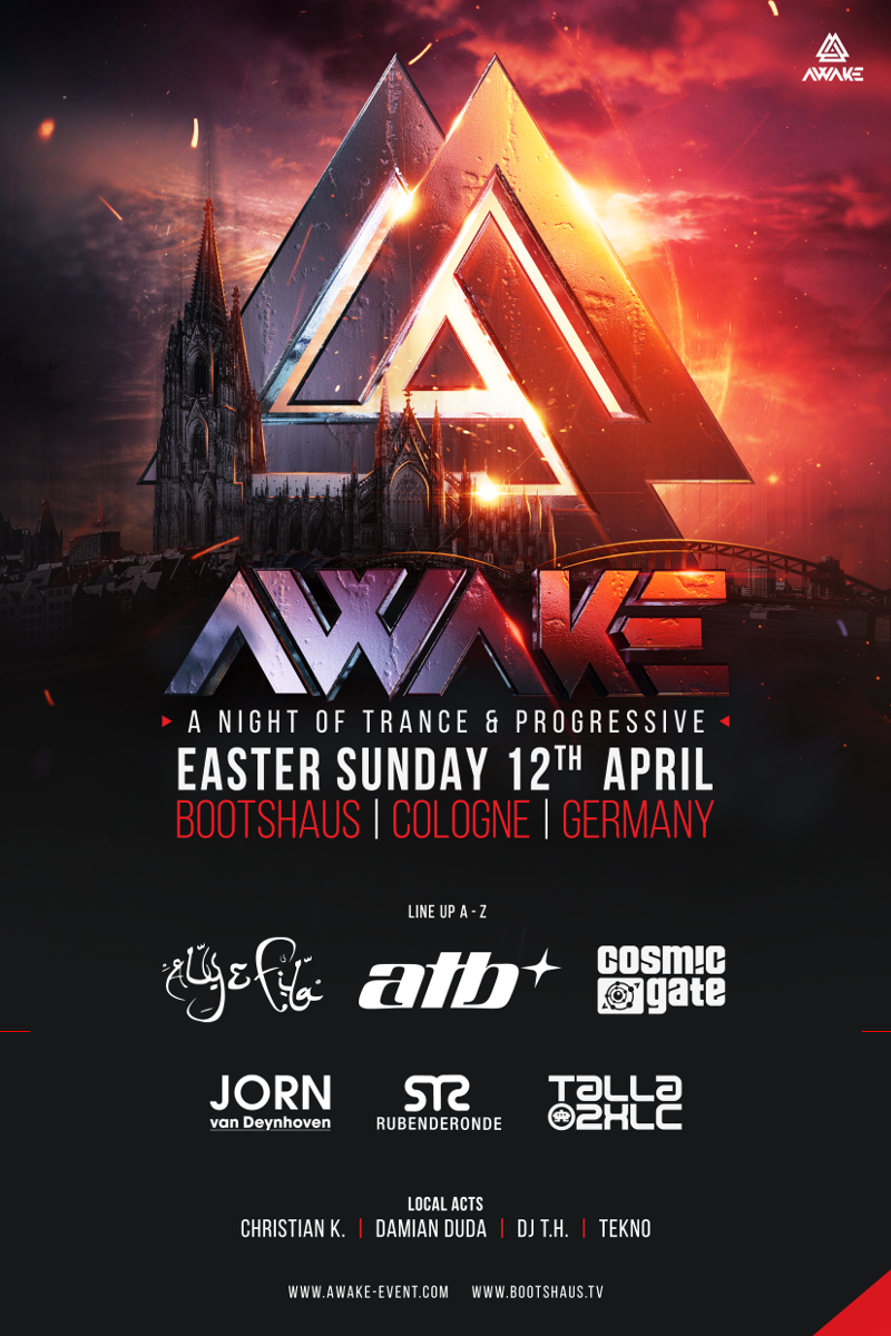 [2020-04-12] Wird verschoben! AWAKE pres. Aly & Fila, ATB, Cosmic Gate, Jorn van Deynhoven, Talla 2XLC, ... @ Bootshaus, Köln