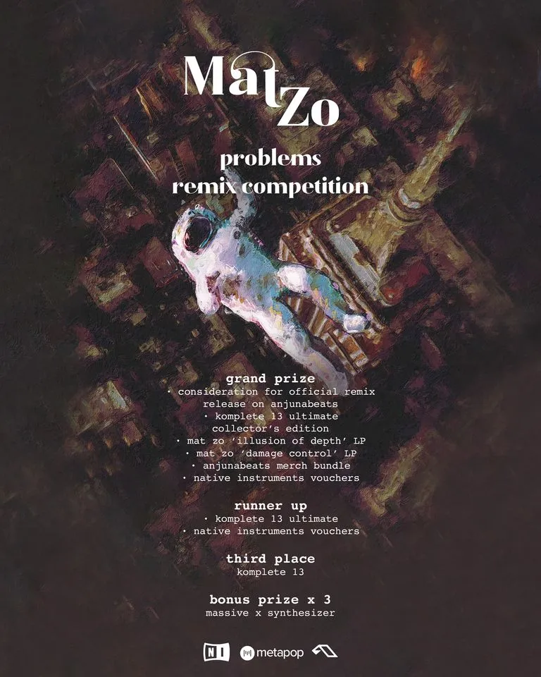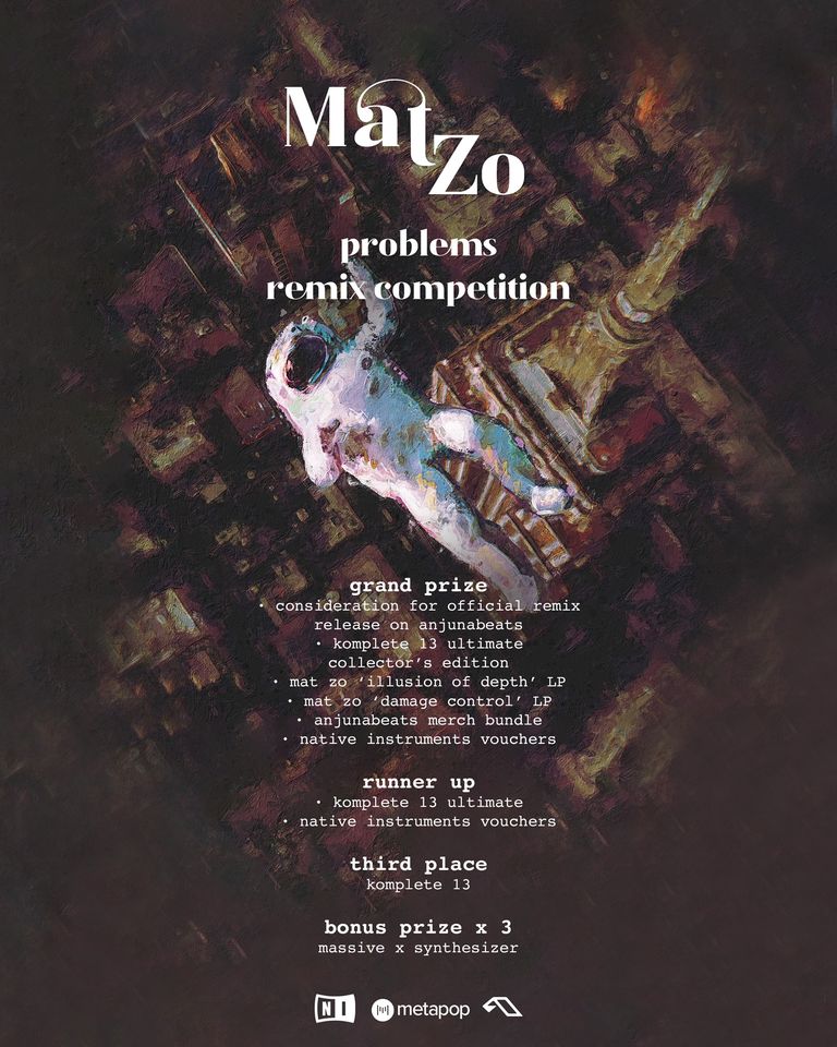 Native Instruments, Anjunabeats und Mat Zo haben sich zusammengetan und veranstalten einen Remix-Contest. Zu remixen ist der Track Mat Zo feat. Olan "Problems". Es winkt eine Release auf Anjunabeats und Preise von Native Instruments. Deadline ist der 2. Februar 2021. Weitere Infos auf folgendem Bild: