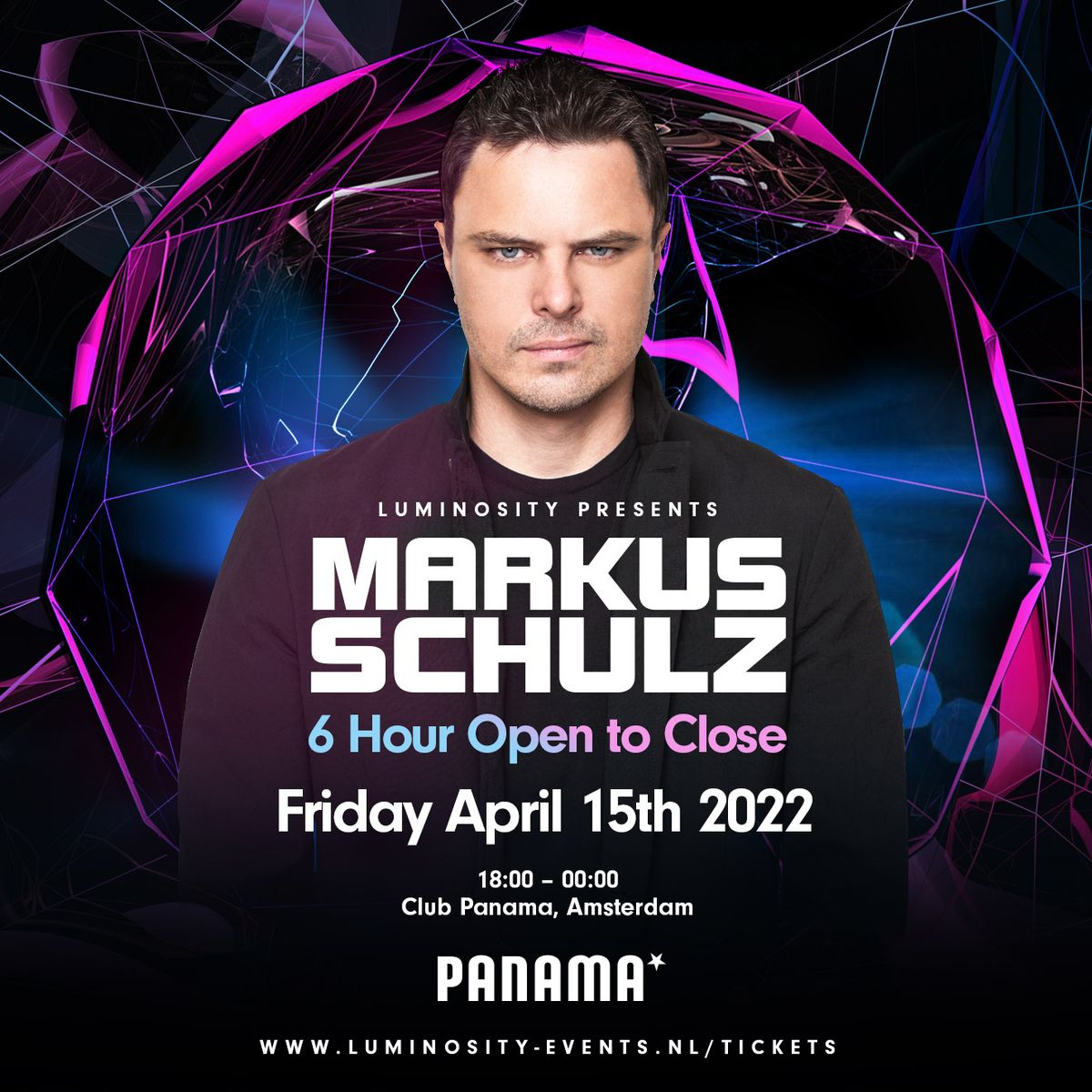 3. April 2022 um 13:26 Offizieller Beitrag #1 Luminosity Events präsentiert: 8 Stunden Markus Schulz im Amsterdamer Club Panama am 15. April 2022 (neuer Termin).Info & Tickets: https://luminosity-events.nl/cevent/markus-…nama-amsterdam/