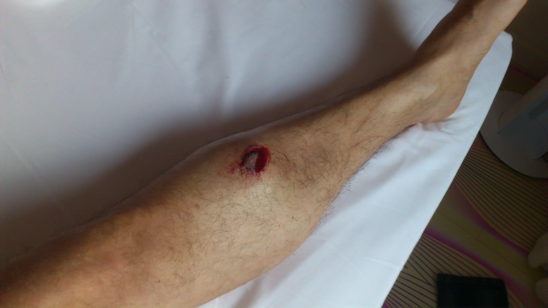 bein-aua nach dem berlin-gig beim ralph. hatte sich beim herumspringen auf der bühne verletzt. ist aber alles wieder heile. nähte sollen wohl spätestens zu silvester raus: