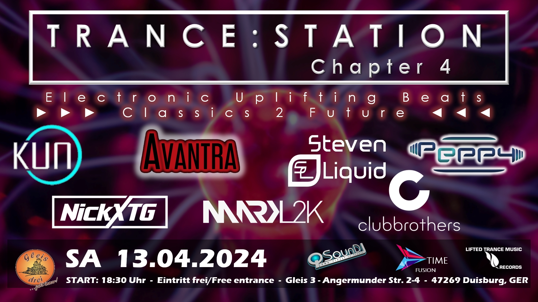 Nach einer atemberaubenden und unvergesslichen dritten Ausgabe der TRANCE:STATION im März 2023 setzen wir die Reise fort! Diesmal präsentieren wir Euch ein erweitertes Lineup mit 7 großartigen DJs, um erneut eine Nacht voller Trance-Magie zu schaffen.