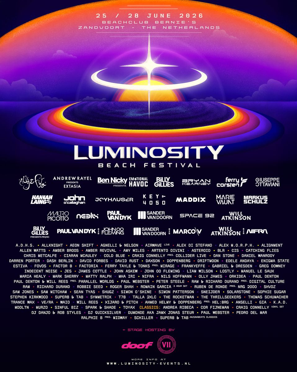 [2026-06-25/28] Luminosity Beach Festival 2026 @ Beachclub Bernies, Zandvoort