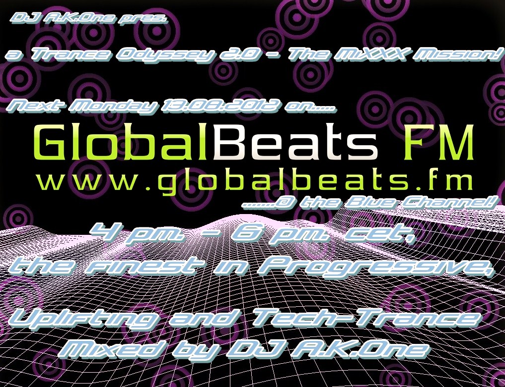 am Montag den 04.06.2012 von 16 - 18 Uhr gibt es bei https://www.tranceforum.info/www.globalbeats.fm auf dem Blue Channel eine neue Folge meiner "a Trance Odyssey 2.0 - The MiXXX Mission" Sendung.