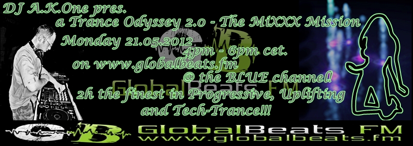 am Montag den 04.06.2012 von 16 - 18 Uhr gibt es bei https://www.tranceforum.info/www.globalbeats.fm auf dem Blue Channel eine neue Folge meiner "a Trance Odyssey 2.0 - The MiXXX Mission" Sendung.