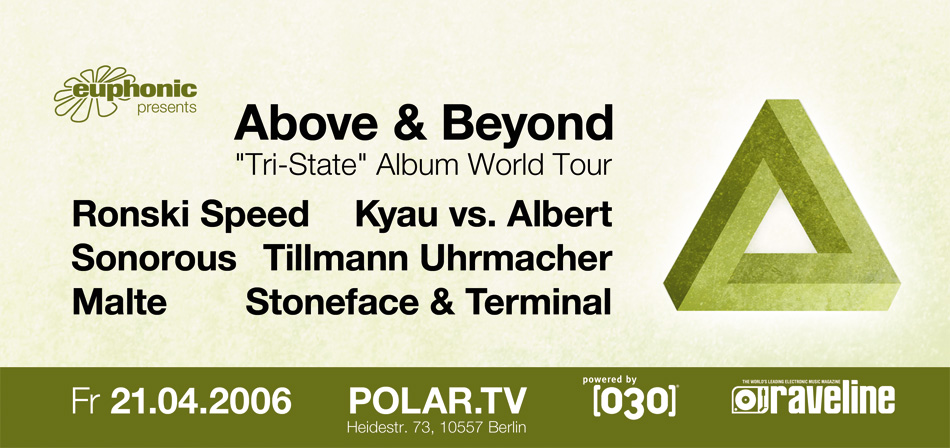 Above & Beyond, Ronski Speed, Kyau vs. Albert, Tillmann Uhrmacher, Sonorous, Stoneface & Terminal und Malte (Berliner Local-Trance-DJ!)
