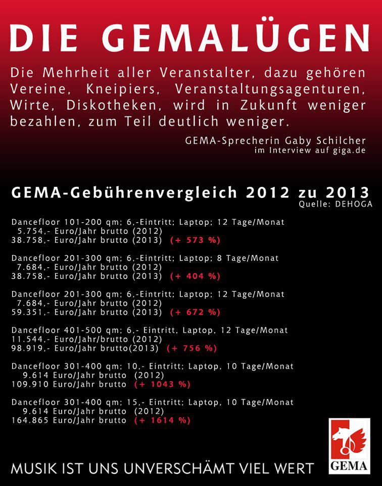 Durch die extrem gestiegenen Preise sterben erstens die Clubs und zweitenes spült es noch weniger in die GEMA kasse, weil garkeiner mehr konsumiert.