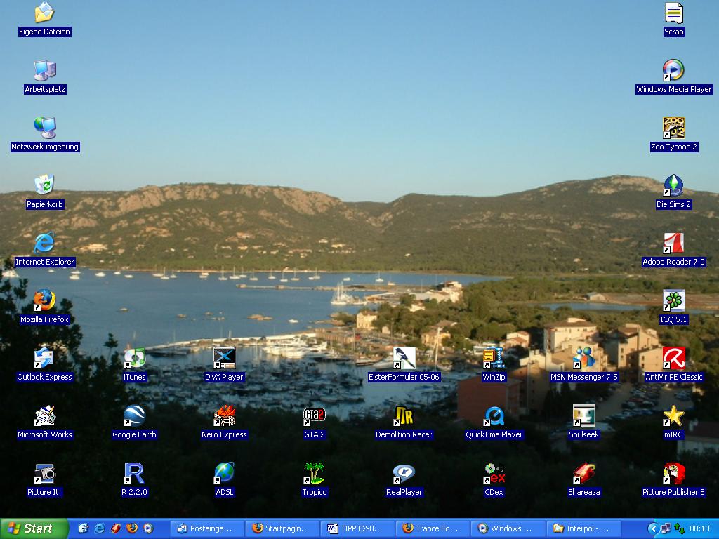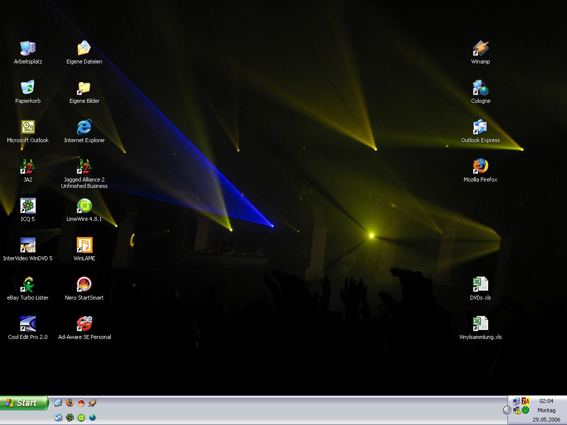 Mein Desktop ist rabenschwarz, also kaum herzeigenswert, noch dazu übersät mit Icons... aber muss eh bald formatieren, bevor mein Win endgültig seinen Geist aufgibt.