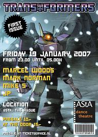 8. Januar 2007 um 23:25 #1 Am 19.01.2007 findet im Asta in Den Haar TRANSFORMERS statt.Als DJs geben sich Marcel Woods, Mark Norman, Mike S. und JP die Ehre.Voorverkoop ? 10,- (ex. fee) via deze site.Prijs : 15,00Open: 23.00 - 05.00 uurInfos: https://www.tranceforum.info/www.asta.nl
