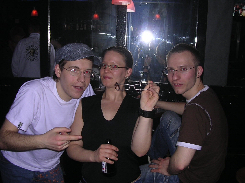 Es gibt übrigens auch n nettes Bild von der Pre-Party bei mir zu Hause. Der Robeat legt gerade auf. Links der Steve Rocket und in der Mitte Thomas AGE.