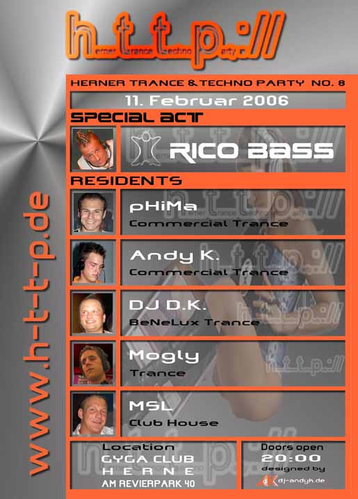 Nur um das nochmal klarzustellen: Am 11.2.(Samstag) is die "normale" Edition....von House über Kommmerz bis BeNeLux! Am 17.2.(Freitag) is die "Hard-Edition" mit allem was härter ist, als das oben genannte! Hope 2 see U...Greetz pHiMa