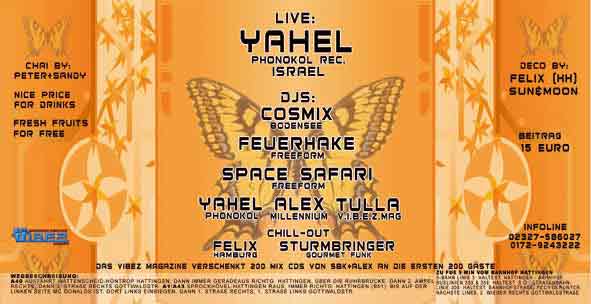 Lineup: Yahel, Cosmix, Feuerhake, Space Safari, Alex, Tulla, Chill: Bahana & Sturmbringer, Live: Yahel